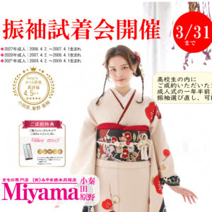 - 小田原、秦野で振袖、卒業式袴はMIYAMA みやま橋本呉服店へ、振袖レンタル、購入、人気の色、柄!様々なプランをご用意!ママ振袖、写真だけプランも人気!着物専門店として地元小田原で60年、親切丁寧な接客が自慢、
