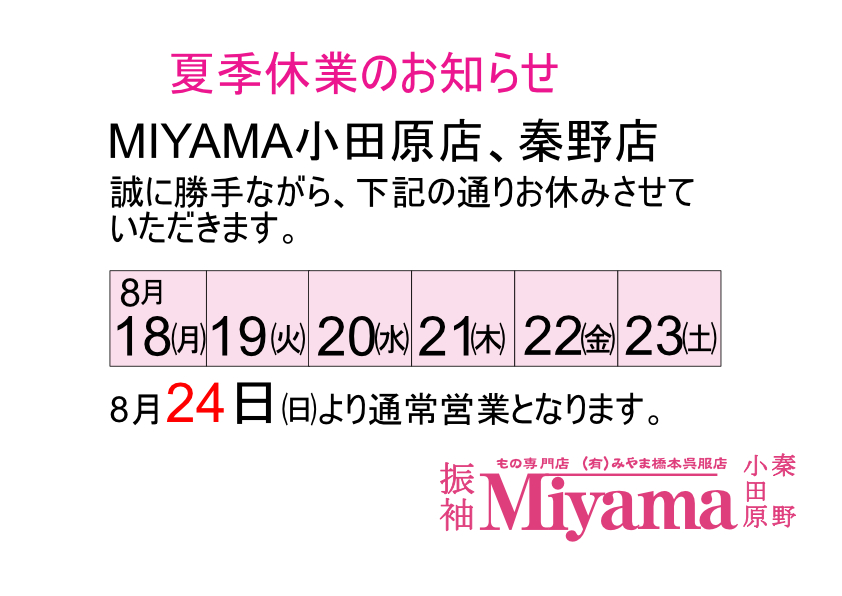 定休日やイベントの開催など、みやま橋本呉服店の最新情報をお知らせ